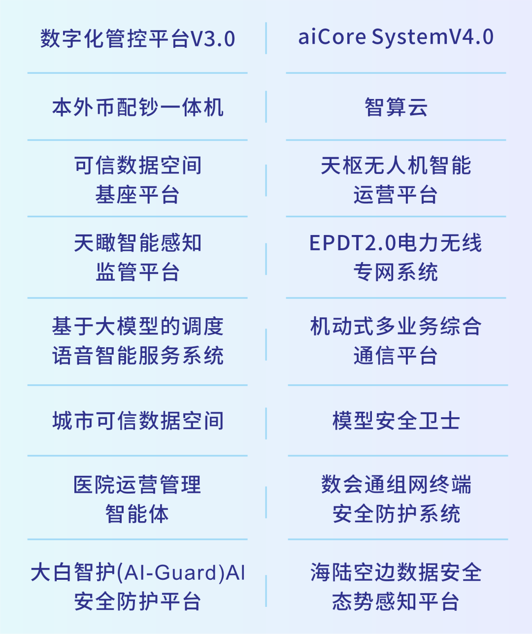 ´ó»áÐû²¼ÁËÊý×Ö»¯¹Ü¿Ø¡¢ÎÞÈË¡¢µÍ¿Õ¡¢Êý¾ÝÇå¾²µÈÁìÓòµÄ16ÏîÖØµãÐÂÊÖÒÕвúÆ·£¬Í¬²½Ðû²¼¼¯ÍſƼ¼Í¼Æ×¡¢½¹µãרÀû¡¢Ö÷Òª±ê×¼¡¢ÓÅÒìÂÛÎÄ»ã±àµÈһϵÁпƼ¼Ð§¹û¡£ÆäÖУ¬ÒøºÓ¼¯ÍŹÙÍøÖØ°õÐû²¼ÌìÊàÎÞÈË»úÖÇÄÜÔËӪƽ̨¡¢Ììî«ÖÇÄܸÐÖªî¿ÏµÆ½Ì¨¡¢EPDT2.0µçÁ¦ÎÞÏß×¨ÍøÏµÍ³ÈýÏîЧ¹û¡£
